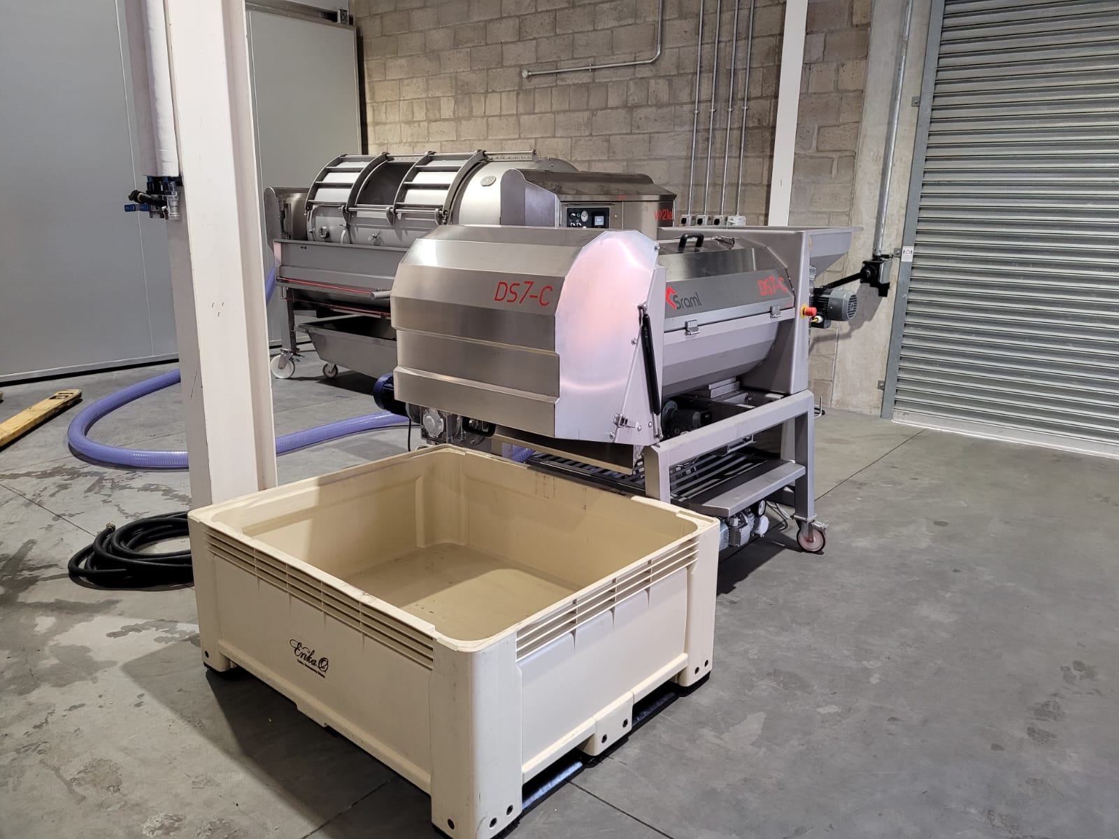 The SRAML DS7-C Destemmer with inline sliding crusher features a loading hopper and a mechanically controlled auger to feed grapes into the PVC cage for destemming. It has length- and inclination-adjustable rubber tips on the destemming shaft and an electronic speed variator to control cage and shaft rotation. It’s simple to operate, easy and quick to assemble and disassemble without tools, and provides easy access to the interior for efficient cleaning and maintenance.