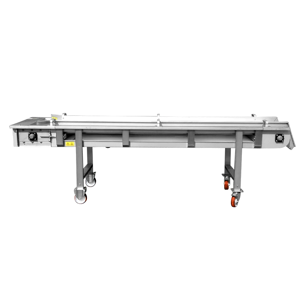 - Convoyeur à bande de triage entièrement lavable, fourni avec un racleur pour un nettoyage interne complet de la bande